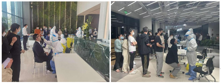 考虑到建筑工地人群密集、人员流动性大、食宿集中,是疫情防控的高风险领域,3月13日,在赵巷镇政府的支持下,赵巷园区组织对园区建筑工地施工人员开展核酸检测,覆盖项目工地管理公司、监理、总分包管理人员及建筑工人约1300人。送检上门的方式,既最大限度降低了疫情传播风险,又确保了园区建设工作的平稳正常运行。