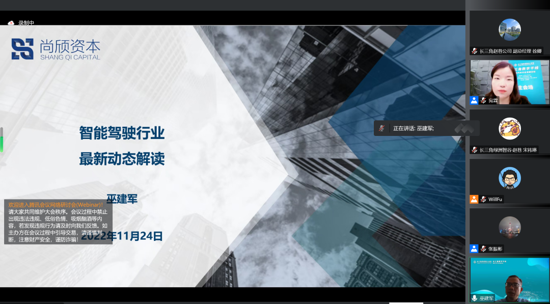 11月24日,由长三角赵巷新兴产业经济发展(上海)有限公司主办,晨哨集团联合主办的“长三角数字干线——智能汽车行业发展论坛”在线上隆重举办, 本次论坛通过长三角绿洲智谷·赵巷微信视频号同步直播,吸引了智能汽车领域的“高精尖”技术企业、头部投资机构与前沿研究院校等千余名嘉宾的参与及关注。