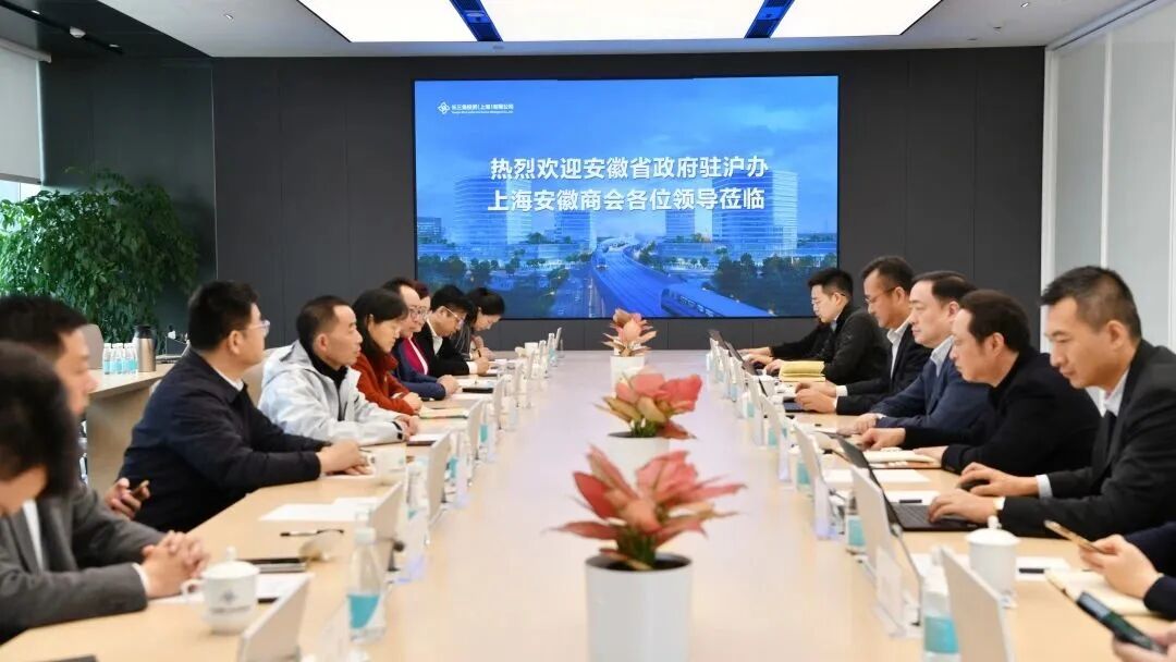 安徽驻沪办业务处,长三角投资公司投资发展部、行政办公室及长三角赵巷新兴产业经济发展(上海)有限公司相关负责人陪同接待并参与交流座谈。