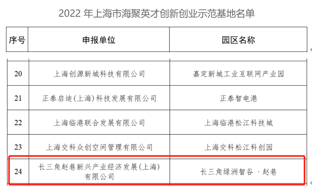 为深入贯彻落实中央和上海市人才工作会议精神,加快推进高水平人才高地建设,上海市人才工作领导小组办公室、上海推进科技创新中心建设办公室联合开展评选工作,在全市范围内遴选一批优质科技产业园区,作为“上海市海聚英才创新创业示范基地”。长三角绿洲智谷·赵巷园区通过专家评审成功入选,成为上海市33个“海聚基地”之一。