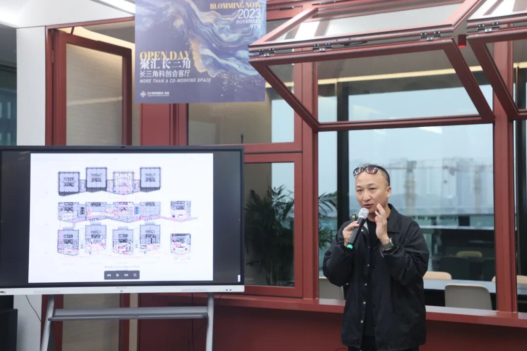 活动现场,我们邀请到国际知名设计公司Anyscale中方合伙人陈宪淳,为到场嘉宾阐释了园区科创中心整个科创综合体的创意来源和设计方案理念,团队提取了城市中的元素和场景,对其进行解构提炼,并通过现代手法重组,着力营造充满惊喜的叙事性空间体验,也让整个空间布局完善而具创意,简洁利落。