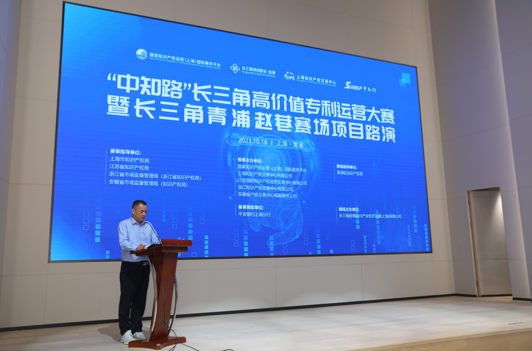 10月18日下午,“中知路”长三角高价值专利运营大赛在长三角绿洲智谷·赵巷成功举办,本次赛场路演由青浦区知识产权局指导,长三角赵巷新兴产业经济发展(上海)有限公司主办。