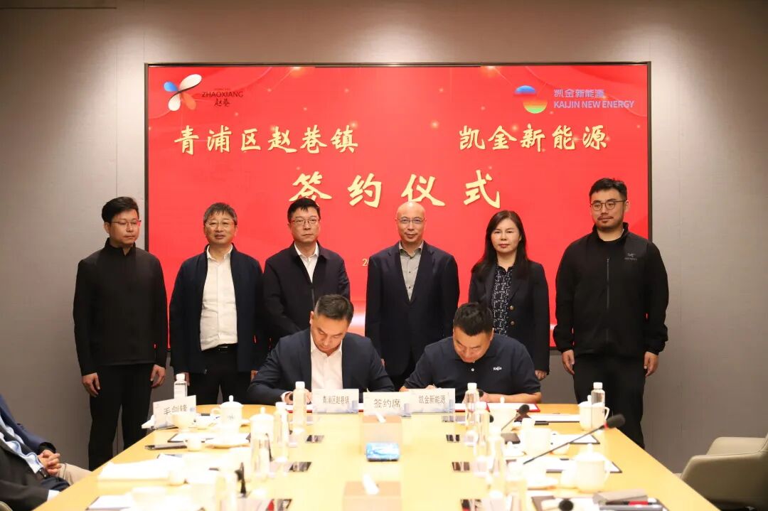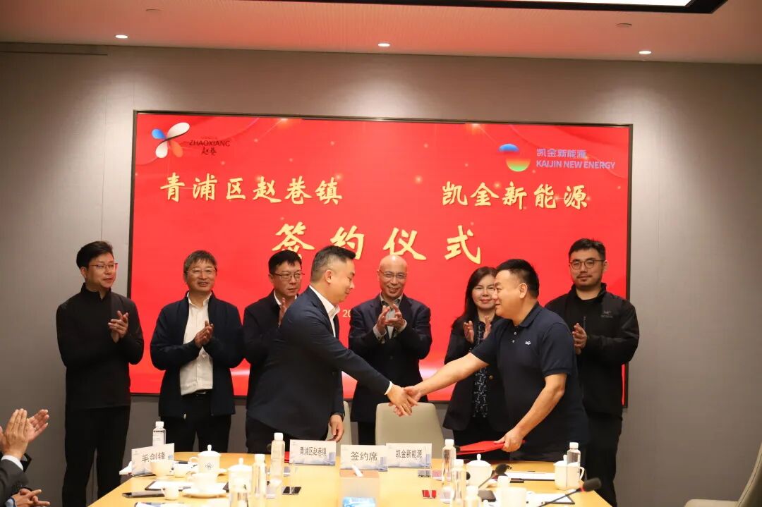 青浦区赵巷镇副镇长李军,凯金新能源集团总裁办副主任费建国签署《合作备忘录》。