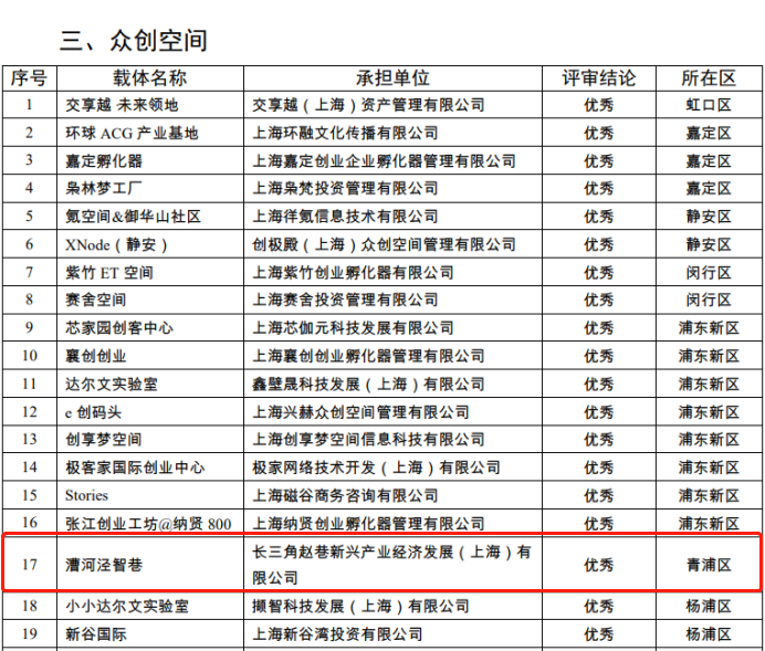 本次评定是上海市科委针对本市科技创新创业载体的服务能力、服务成效、可持续发展能力和创新服务等环节开展的年度绩效评价。全市共有146家众创空间参与了年度评价工作,经过专家严格审评打分,长三角绿洲智谷·赵巷园区智巷众创空间凭借扎实的企业培育工作脱颖而出,获得专家评委的认可,绩效评价获评“优秀”。