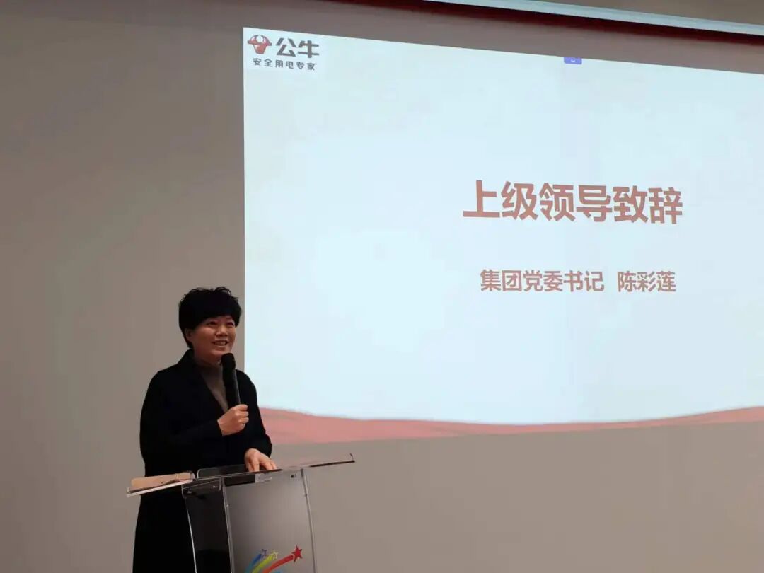 公牛集团党委书记陈彩莲提出三点希望与党员共勉:一要牢记党员身份,提升政治素养;二要坚持专注创新,增强业务能力;三要发挥先锋作用,彰显社会价值。