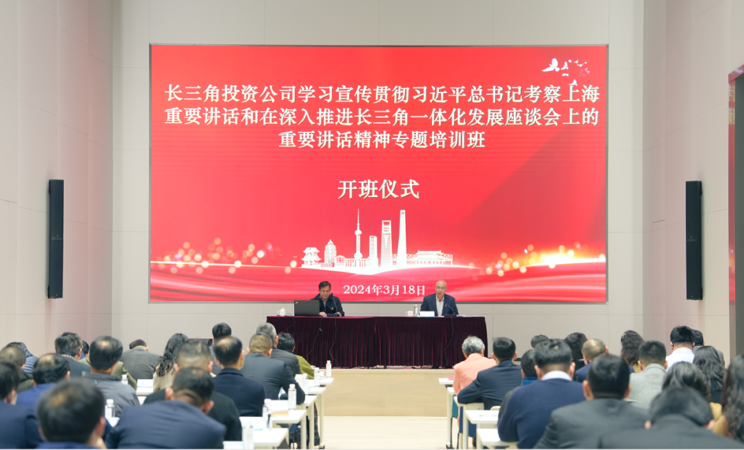 为深入学习贯彻习近平总书记考察上海重要讲话和在深入推进长三角一体化发展座谈会上的重要讲话精神,3月18日至3月20日,长三角投资公司党委举办“学习宣传贯彻习近平总书记考察上海重要讲话和深入推进长三角一体化发展座谈会上的重要讲话精神专题培训班”。公司党委书记、董事长池洪出席开班、结业仪式并讲话。