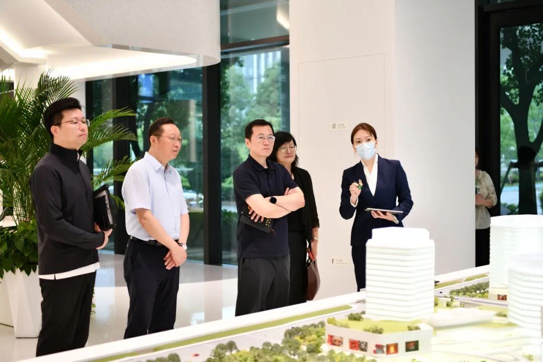王永前一行在刘骏陪同下来到长三角投资公司展厅,详细听取公司服务长三角一体化国家战略的阶段性发展成果及西岑科创园区和长三角绿洲智谷·赵巷园区的建设情况介绍,并实地参观了赵巷园区长三角科创中心。